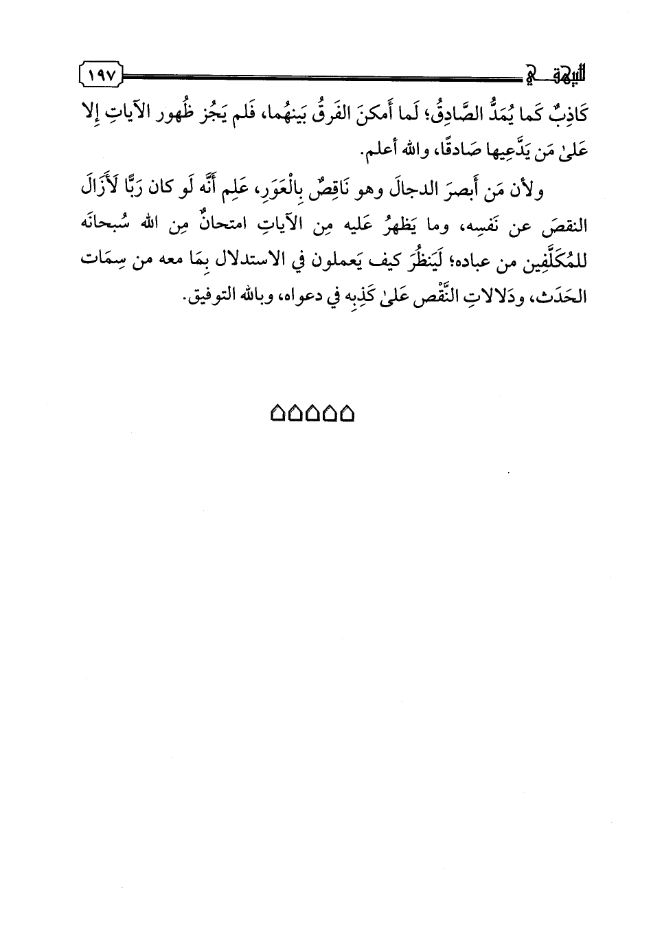 ولأن من أبصر الدجال وهو ناقص بالعور، علم أنه لو كان ربا لأزال النقص عن نفسه، وما يظهر عليه من الآيات امتحان من الله سبحانه للمكلفين من عبادة، لينظر كيف يعملون في الاستدلال بما معه من سمات الحدث، ودلالات النقص على كذبه في دعواه، وبالله التوفيق.
