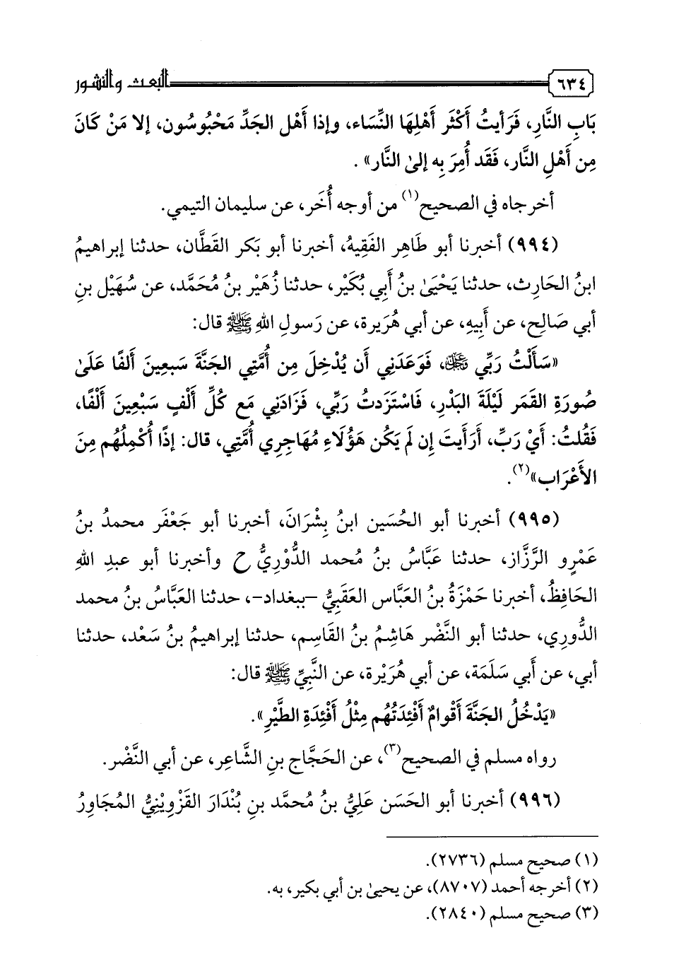 رَوَاهُ مُسْلِمٌ فِي الصَّحِيحِ، عَنِ الْحَجَّاجِ بْنِ الشَّاعِرِ، عَنْ أَبِي النَّضْرِ