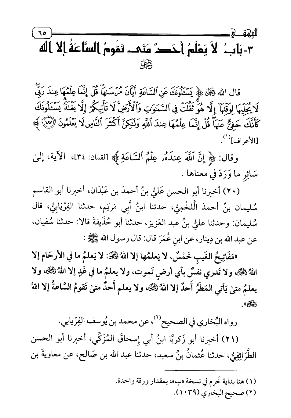 3 - باب لا يعلم أحد متى تقوم الساعة إلا الله عز وجل