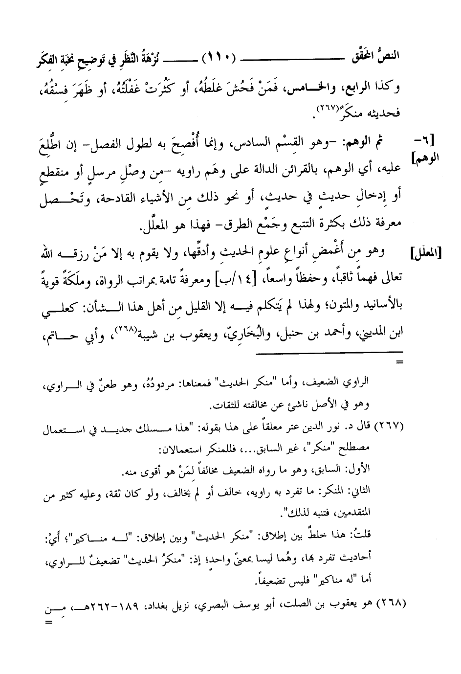 وهو مِن أَغْمضِ أنواعِ علومِ الحديثِ وأدقِّها، ولا يقوم به إلا مَنْ رزقه الله تعالى فهماً ثاقباً، وحفظاً واسعاً، [14/ب] ومعرفةً تامة بمراتب الرواة، وملَكَةً قويةً بالأسانيد والمتون؛ ولهذا لم يَتكلم فيه إلا القليل مِن أهل هذا الشأن: كعلي ابن - المديني، - وأحمد بن حنبل، والبُخَارِيّ، ويعقوب بن شيبة (¬2)، وأبي حاتم،