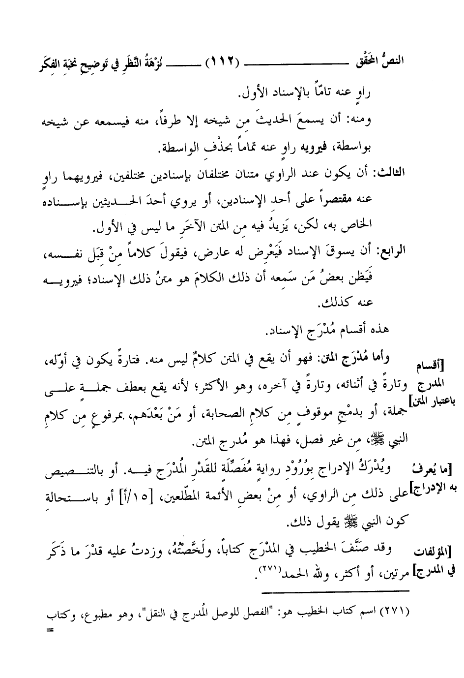 (¬1) اسم كتاب الخطيب هو: "الفصل للوصل الْمُدرج في النقل"، وهو مطبوع، وكتاب ابن حجر هو: "تقريب الْمَنْهَج بترتيب الْمُدْرَج"، وهو مفقود.