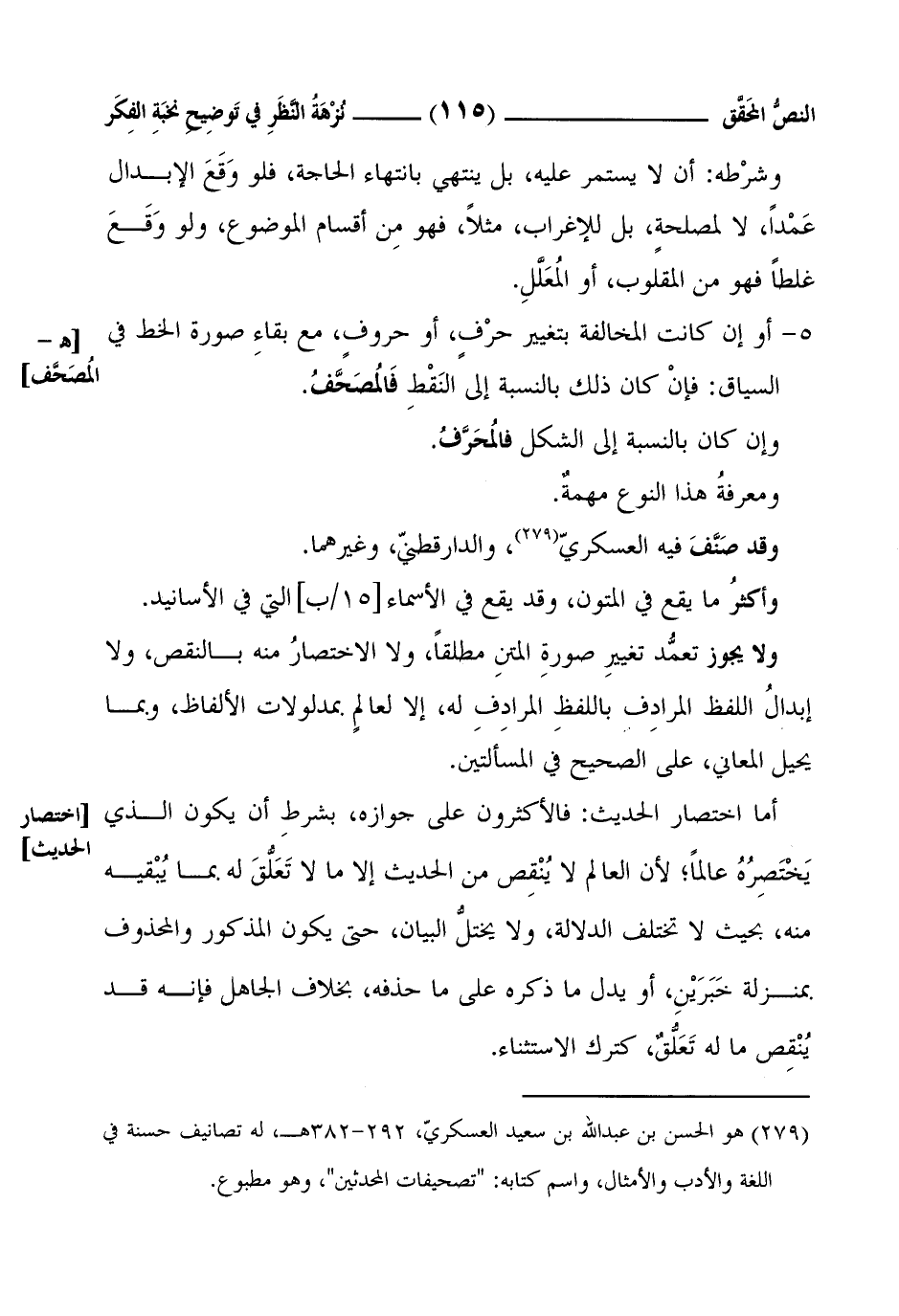(¬1) هو الحسن بن عبدالله بن سعيد العسكريّ، 292 - 382 هـ، له تصانيف حسنة في اللغة والأدب والأمثال، واسم كتابه: "تصحيفات المحدثين"، وهو مطبوع.