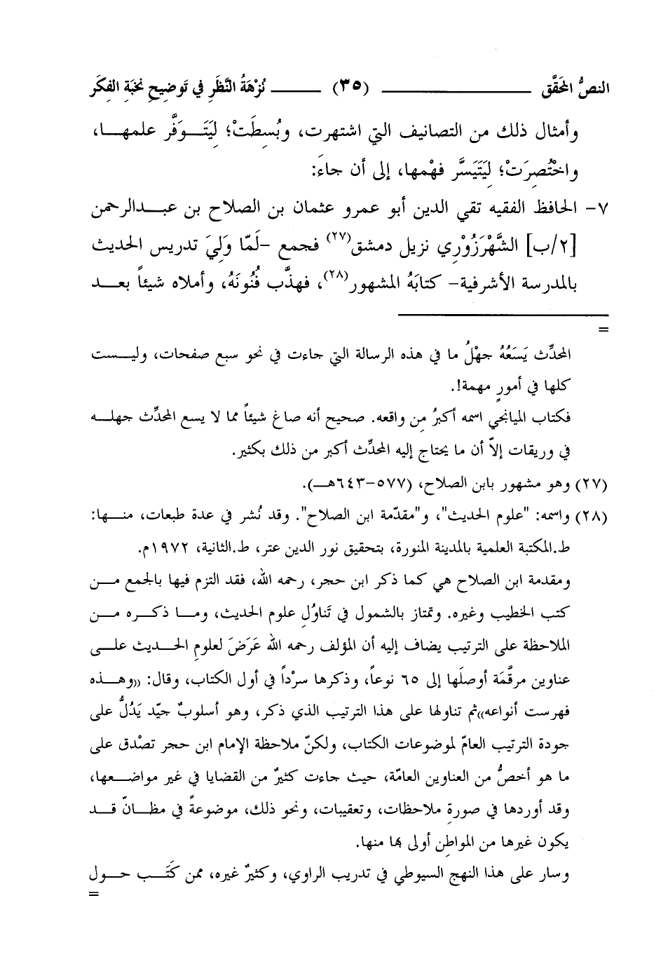 (¬2) واسمه: "علوم الحديث"، و"مقدّمة ابن الصلاح". وقد نُشر في عدة طبعات، منها: ط. المكتبة العلمية بالمدينة المنورة، بتحقيق نور الدين عتر، ط. الثانية، 1972 م.
