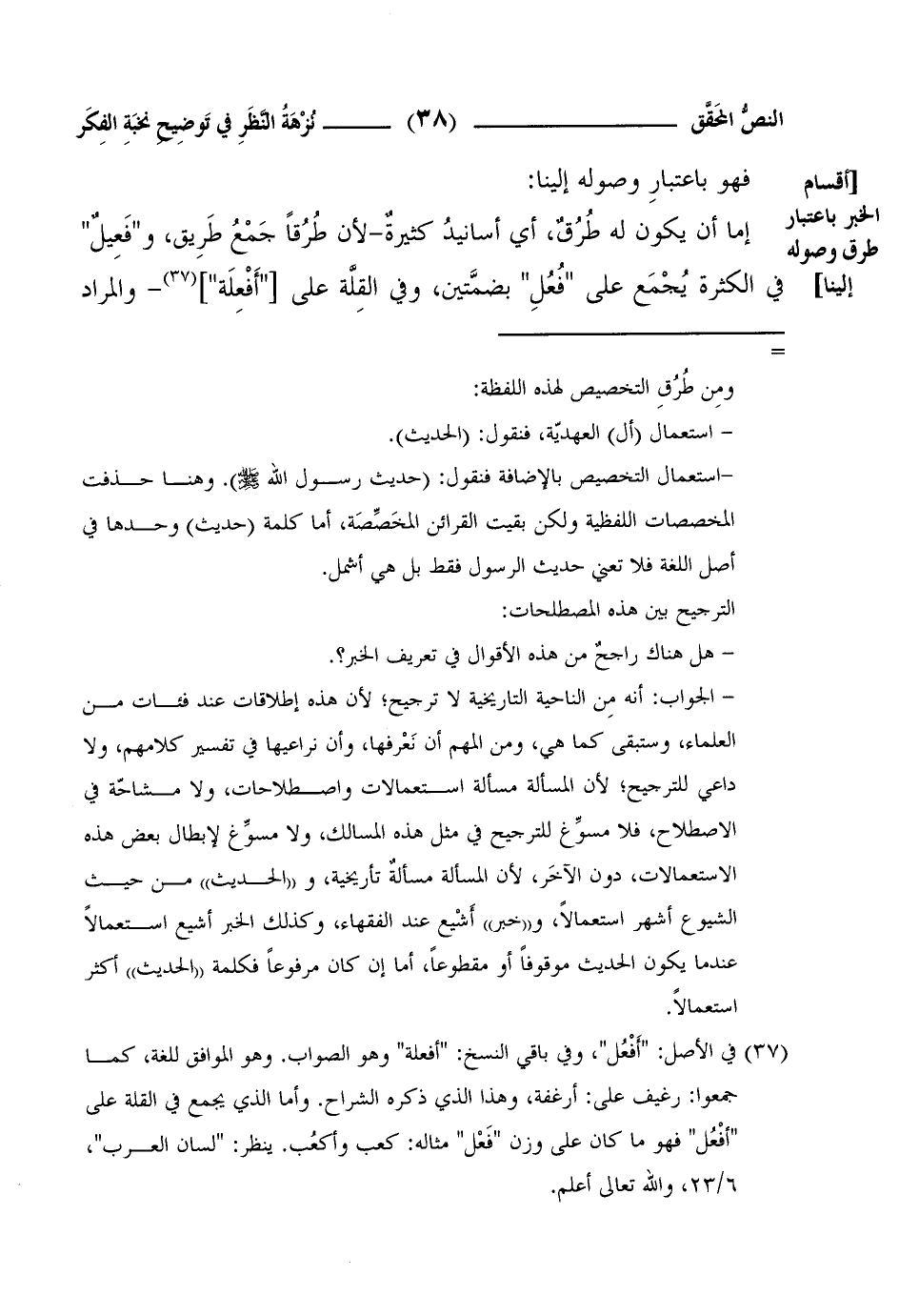 إما أن يكون له طُرُقٌ، أي أسانيدُ كثيرةٌ-لأن طُرُقاً جَمْعُ طَرِيق، و"فَعِيلٌ" في الكثرة يُجْمَع على "فُعُلِ" بضمَّتين، وفي القِلَّة على ["أَفْعِلَة"] (¬1) - والمراد