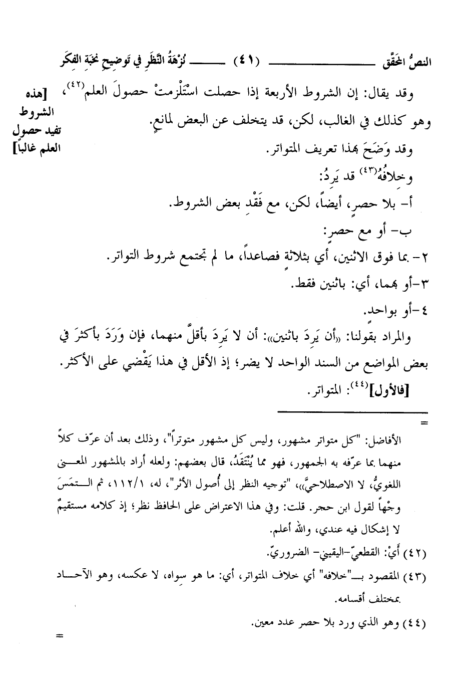 وقد وَضَحَ بهذا تعريف المتواتر.