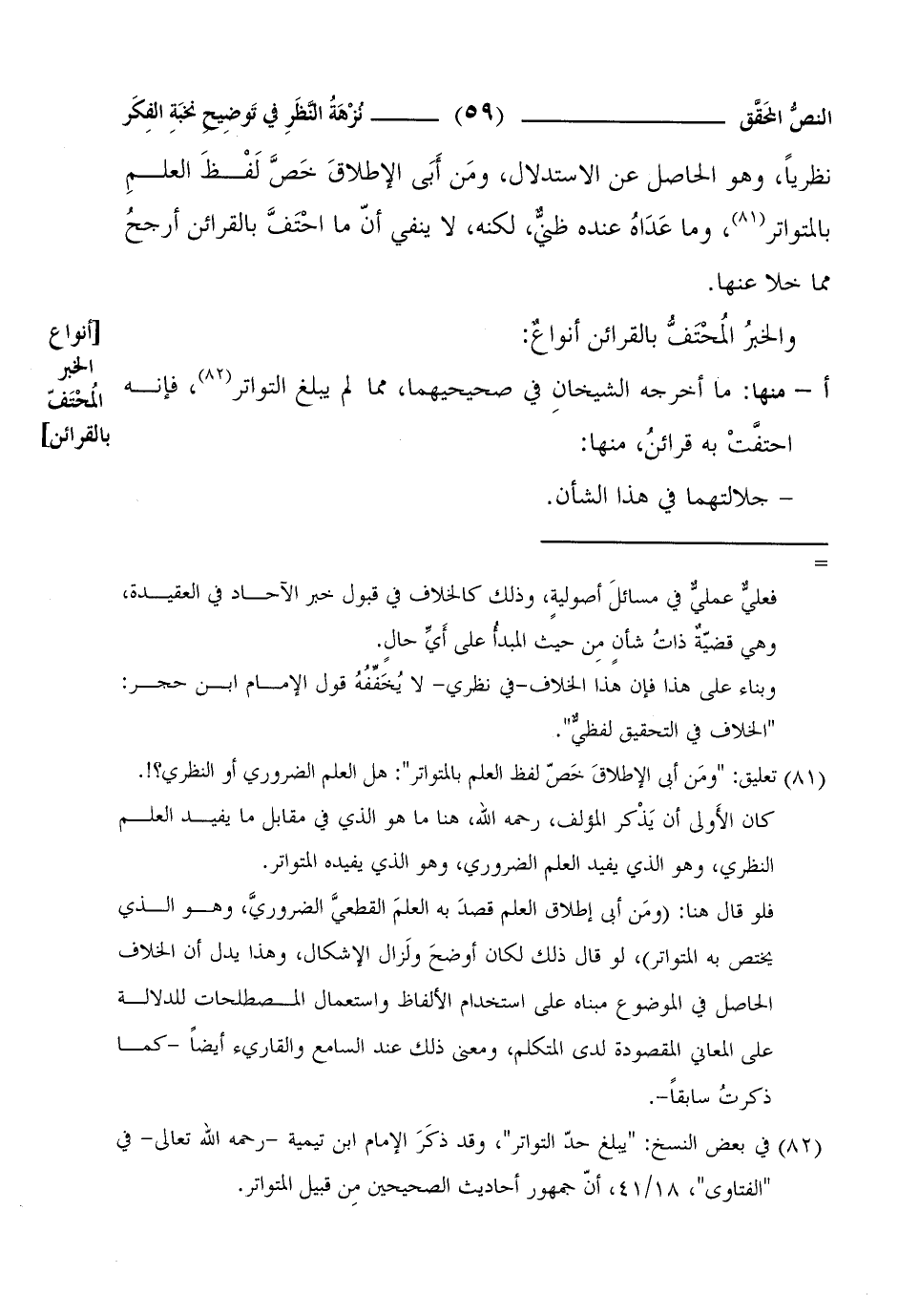 (¬1) تعليق: "ومَن أبى الإطلاقَ خَصّ لفظ العلم بالمتواتر": هل العلم الضروري أو النظري؟ ! .