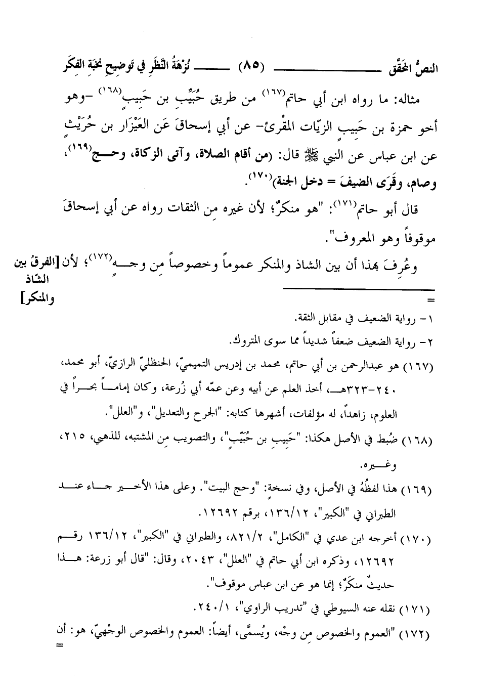 (¬1) هو عبدالرحمن بن أبي حاتم، محمد بن إدريس التميميّ، الحنظليّ الرازيّ، أبو محمد، 240 - 323 هـ، أخذ العلم عن أبيه وعن عمّه أبي زُرعة، وكان إماماً بحراً في العلوم، زاهداً، له مؤلفات، أشهرها كتابه: "الجرح والتعديل"، و"العلل".