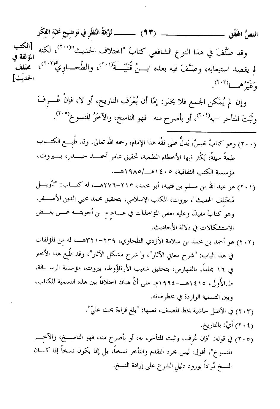 (¬2) هو عبد الله بن مسلم بن قتيبة، أبو محمد، 213 - 276 هـ، له كتاب: "تأويل مُخْتَلِف الحديث"، بيروت، المكتب الإسلامي، بتحقيق محمد محيي الدين الأصفر. وهو كتابٌ مفيدٌ، وعليه بعض المؤاخذات في عددٍ مِن أجوبته عن بعض الاستشكالات في دلالة الأحاديث.