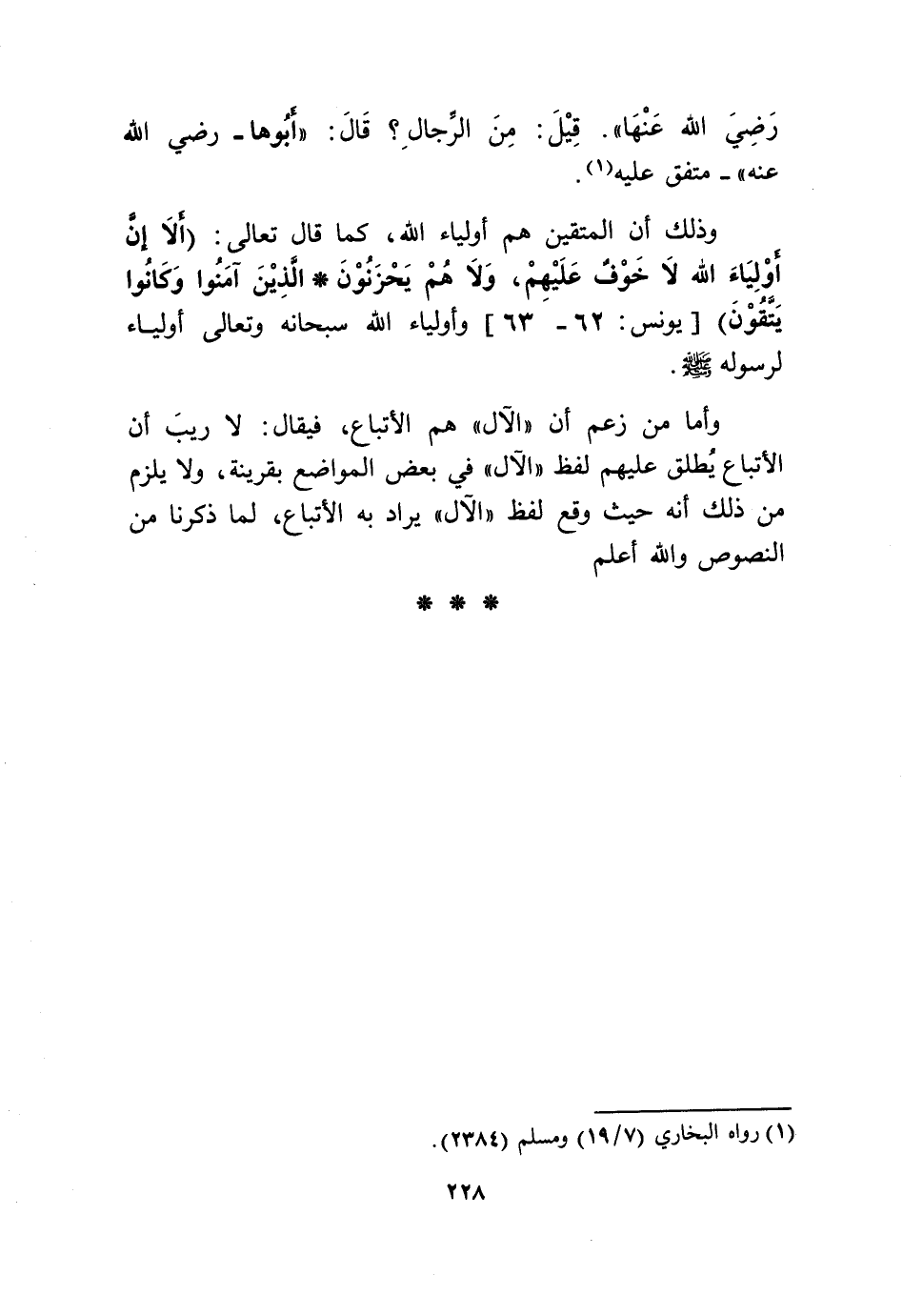 وَذَلِكَ أَن الْمُتَّقِينَ هم أَوْلِيَاء الله كَمَا قَالَ تَعَالَى {أَلا إِنَّ أَوْلِيَاءَ اللَّهِ لَا خَوْفٌ عَلَيْهِمْ وَلا هُمْ يَحْزَنُونَ الَّذين آمنُوا وَكَانُوا يَتَّقُونَ} يُونُس 62 63 وأولياء الله سُبْحَانَهُ وَتَعَالَى أَوْلِيَاء لرَسُوله صلى الله عَلَيْهِ وَسلم