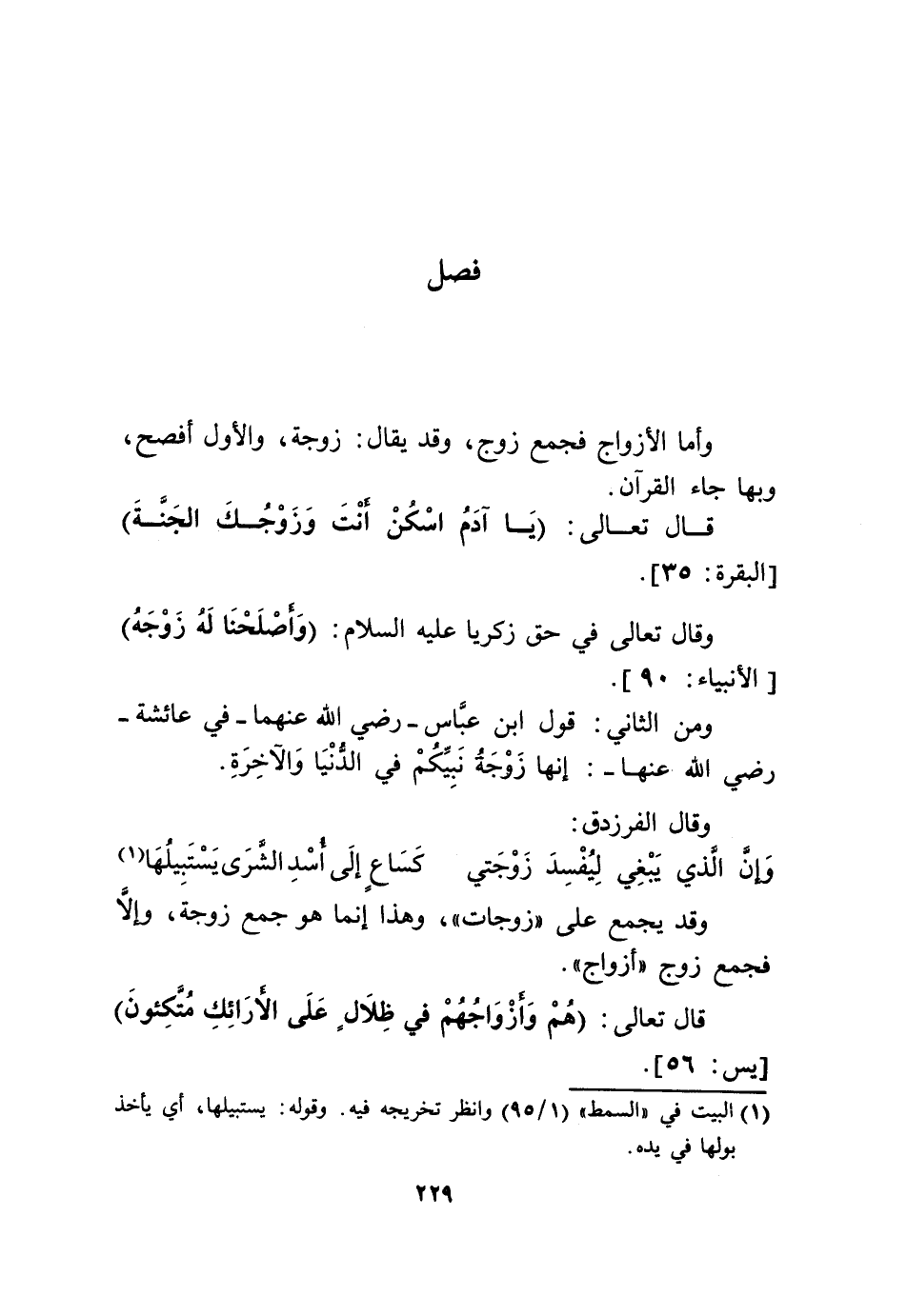 وَأما الْأزْوَاج فَجمع زوج وَقد يُقَال زَوْجَة وَالْأول أفْصح وَبهَا جَاءَ الْقُرْآن