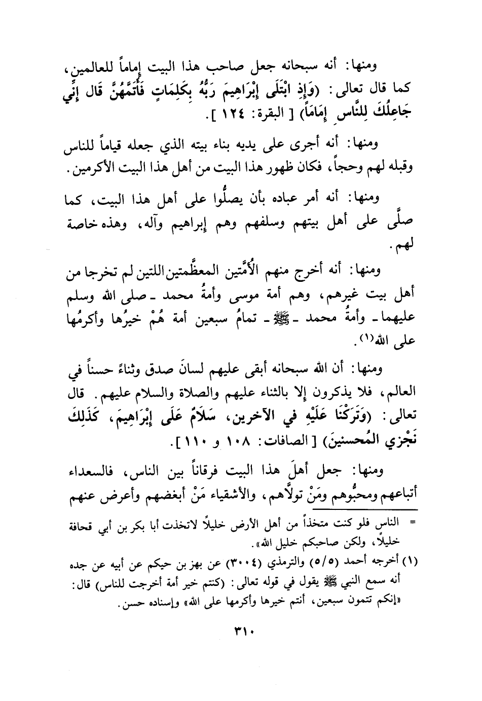 وَمِنْهَا أَنه أَمر عباده بِأَن يصلوا على أهل هَذَا الْبَيْت كَمَا صلى على أهل بَيتهمْ وسلفهم وهم إِبْرَاهِيم وَآله وَهَذِه خَاصَّة لَهُم