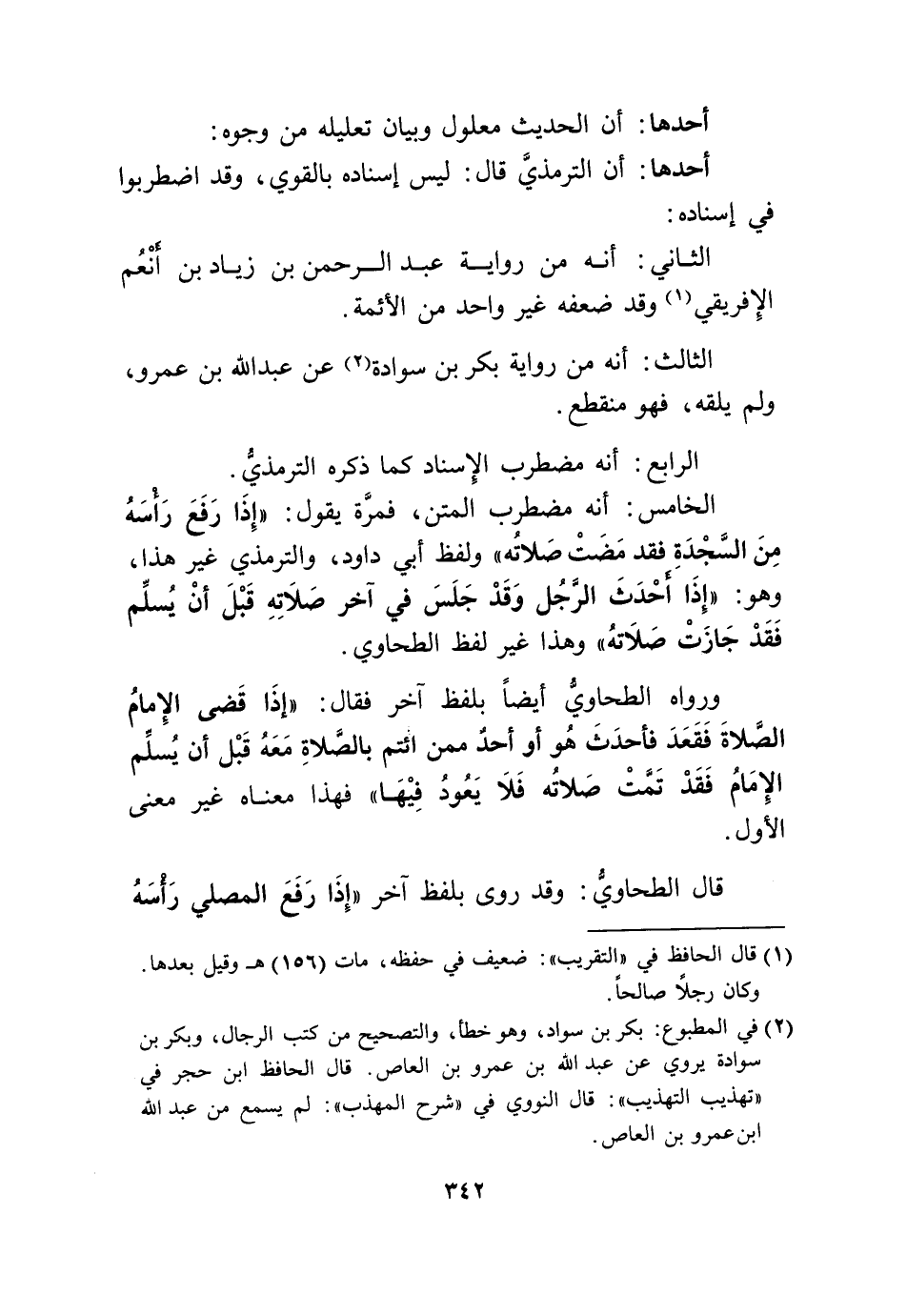 الْخَامِس انه مُضْطَرب الْمَتْن فَمرَّة يَقُول إِذا رفع رَأسه من السَّجْدَة فقد مَضَت صلَاته وَلَفظ أبي دَاوُد وَالتِّرْمِذِيّ غير هَذَا وَهُوَ إِذا أحدث الرجل وَقد جلس فِي آخر صلَاته قبل أَن يسلم فقد جَازَت صلَاته وَهَذَا غير لفظ الطَّحَاوِيّ