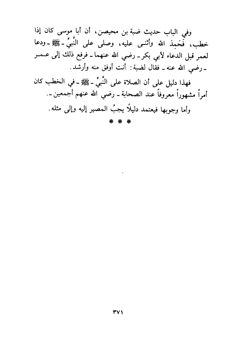 وَفِي الْبَاب حَدِيث ضبة بن مُحَيْصِن أَن أَبَا مُوسَى كَانَ إِذا خطب فَحَمدَ الله وَأثْنى عَلَيْهِ وَصلى على النَّبِي صلى الله عَلَيْهِ وَسلم ودعا لعمر قبل الدُّعَاء لأبي بكر رَضِي الله عَنْهُمَا فَرفع ذَلِك إِلَى عمر رَضِي الله عَنهُ فَقَالَ لضبة أَنْت أوفق مِنْهُ وأرشد