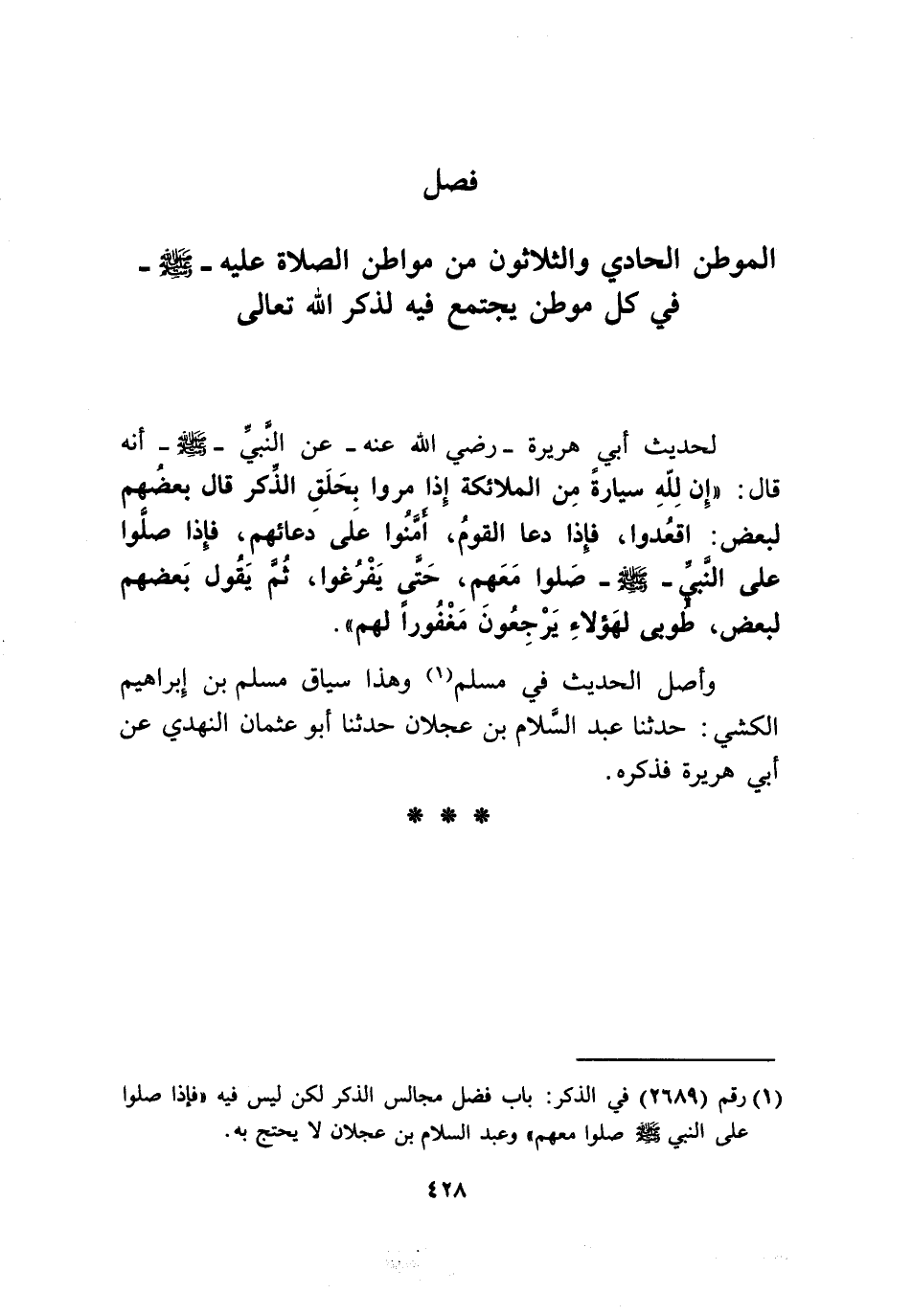 الموطن الْحَادِي وَالثَّلَاثُونَ من مَوَاطِن الصَّلَاة عَلَيْهِ صلى الله عَلَيْهِ وَسلم فِي كل موطن يجْتَمع فِيهِ لذكر الله تَعَالَى