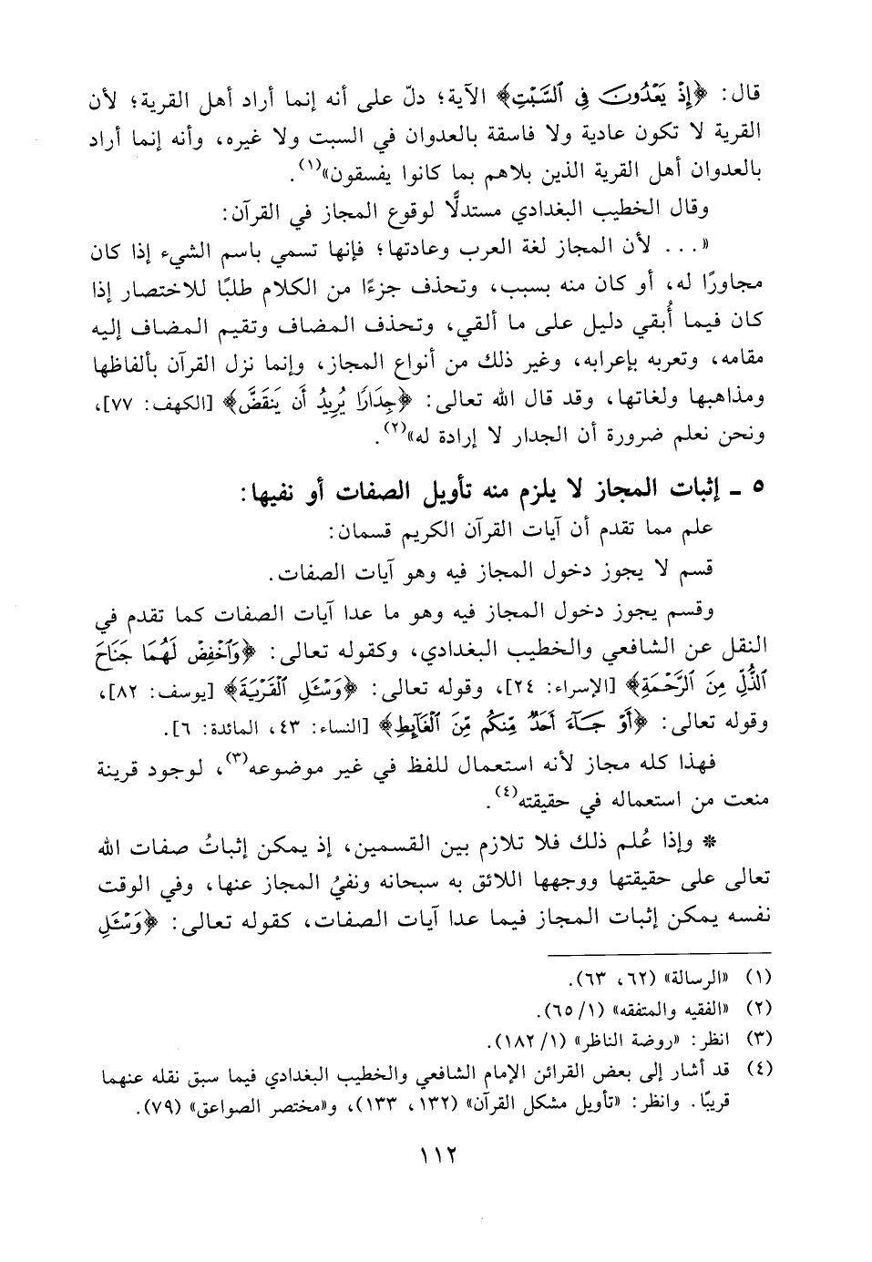 5- إثبات المجاز لا يلزم منه تأويل الصفات أو نفيها:
