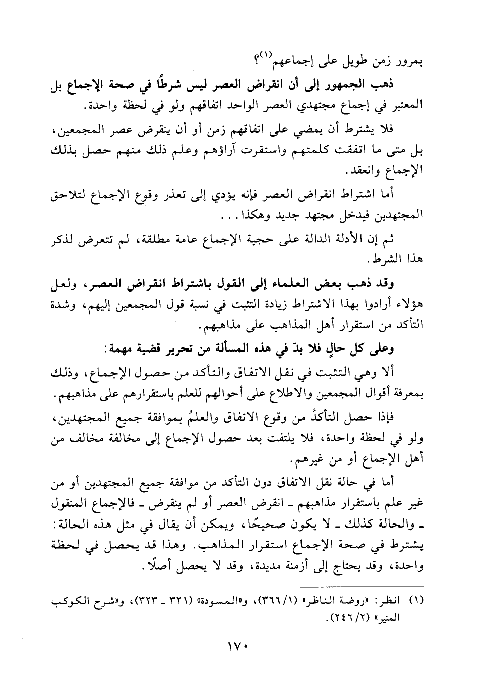 وقد ذهب بعض العلماء إلى القول باشتراط انقراض العصر، ولعل هؤلاء أرادوا بهذا الاشتراط زيادة التثبت في نسبة قول المجمعين إليهم، وشدة التأكد من استقرار أهل المذاهب على مذاهبهم.
