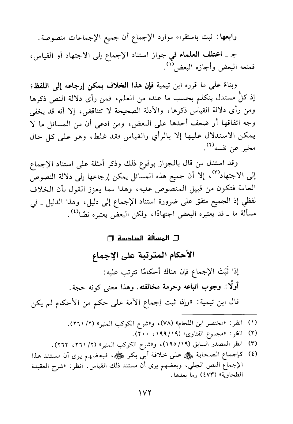 قال ابن تيمية: "وإذا ثبت إجماع الأمة على حكم من الأحكام لم يكن