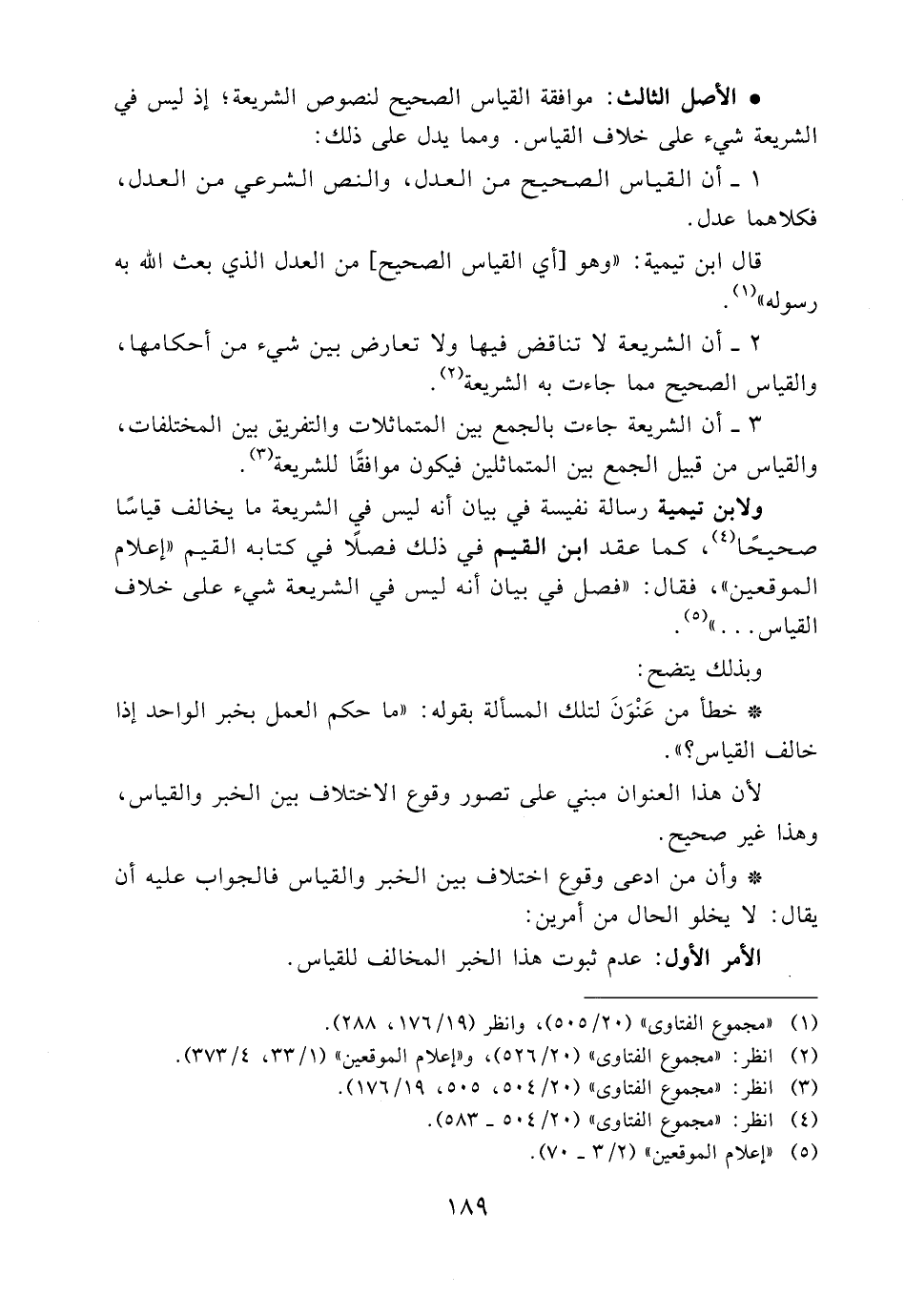 ولابن تيمية رسالة نفيسة في بيان أنه ليس في الشريعة ما يخالف قياسًا صحيحًا (4) ، كما عقد ابن القيم في ذلك فصلاً في كتابه القيم "إعلام الموقعين"، فقال: "فصل في بيان أنه ليس في الشريعة شيء على خلاف القياس......" (5) .
