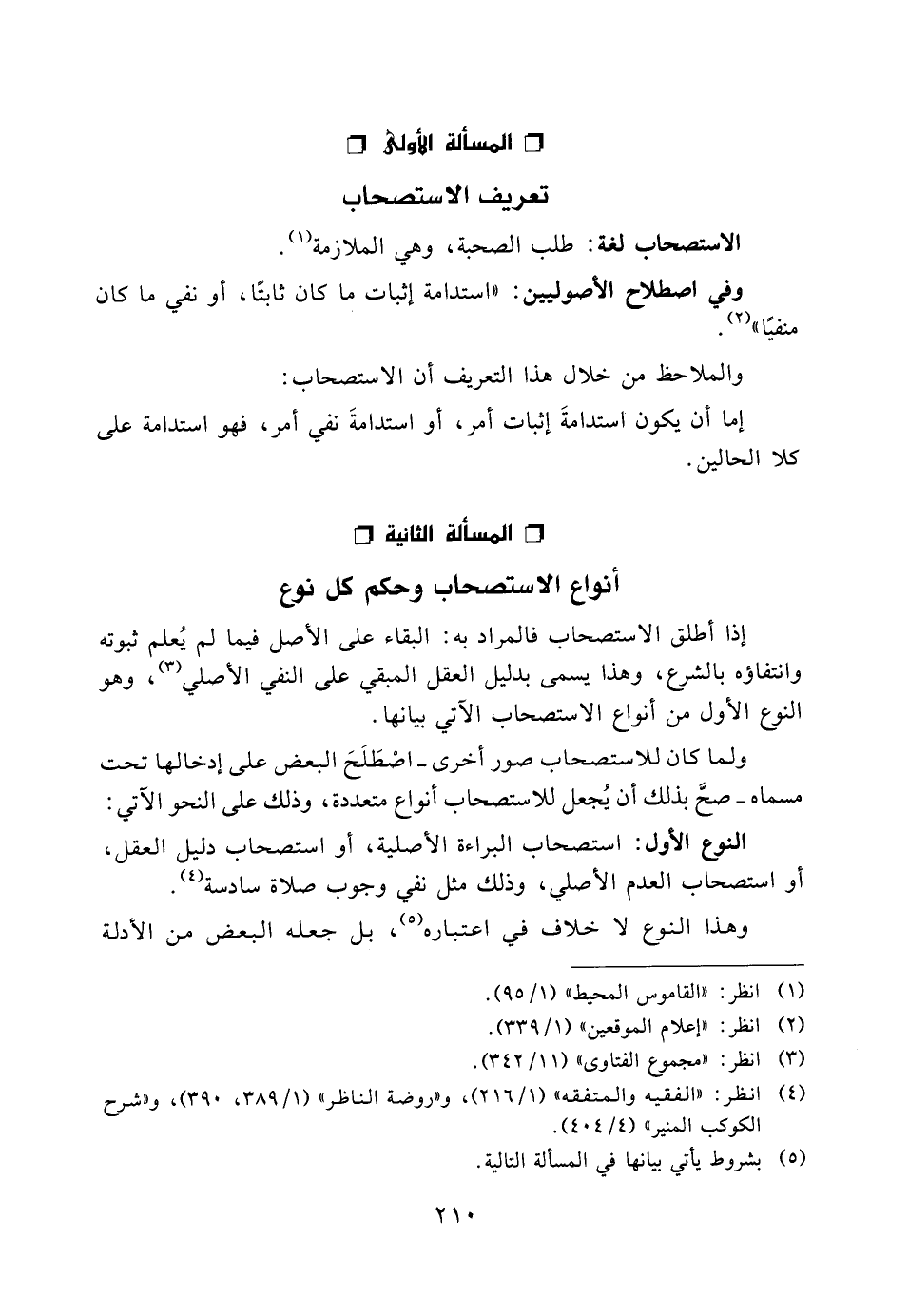 وفي اصطلاح الأصوليين: "استدامة إثبات ما كان ثابتًا، أو نفي ما كان منفيًا" (2) .
