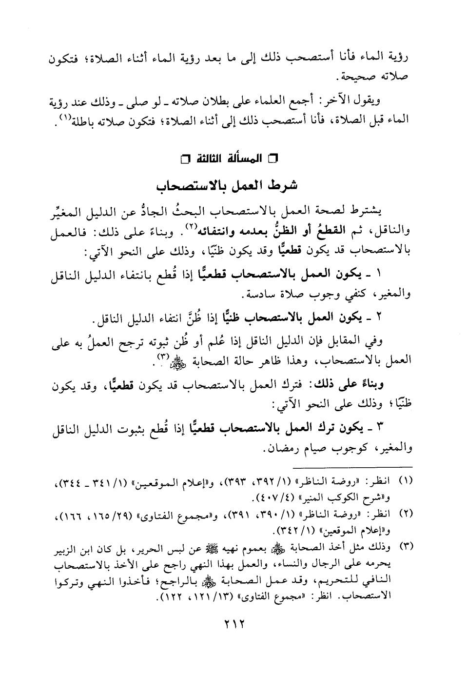 المسألة الثالثة: شرط العمل بالاستصحاب
