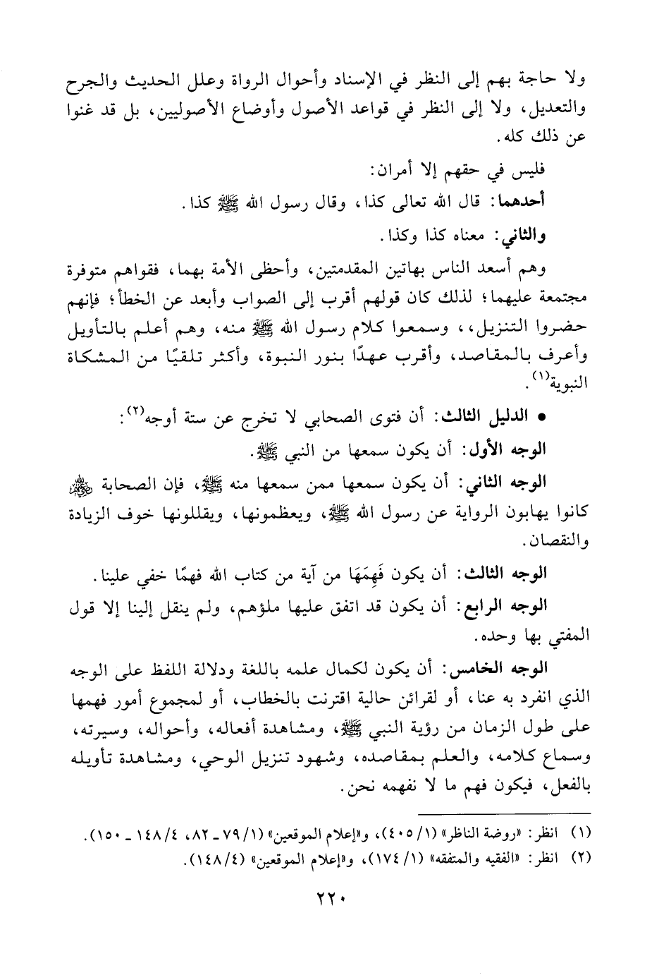 (1) انظر: "روضة الناظر" (1/405) ، و"إعلام الموقعين" (1/79 – 82، 4/148 – 150) .