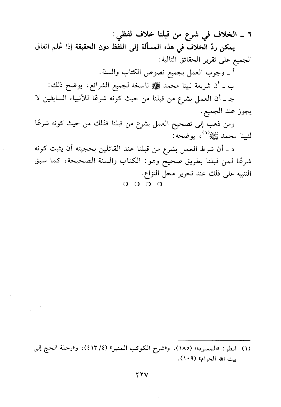 6- الخلاف في شرع من قبلنا خلاف لفظي: