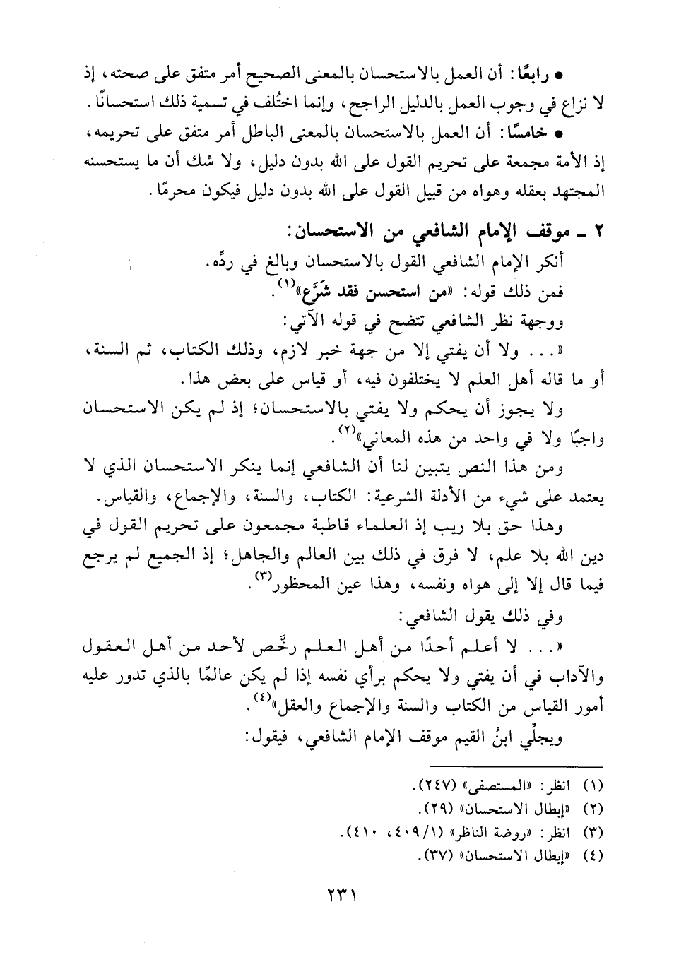 ومن هذا النص يتبين لنا أن الشافعي إنما ينكر الاستحسان الذي لا يعتمد على شيء من الأدلة الشرعية: الكتاب، والسنة، والإجماع، والقياس.