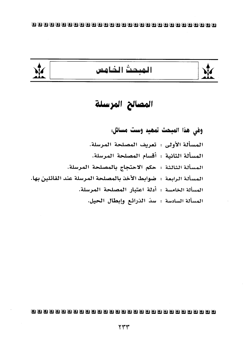المسألة الخامسة: أدلة اعتبار المصلحة المرسلة.