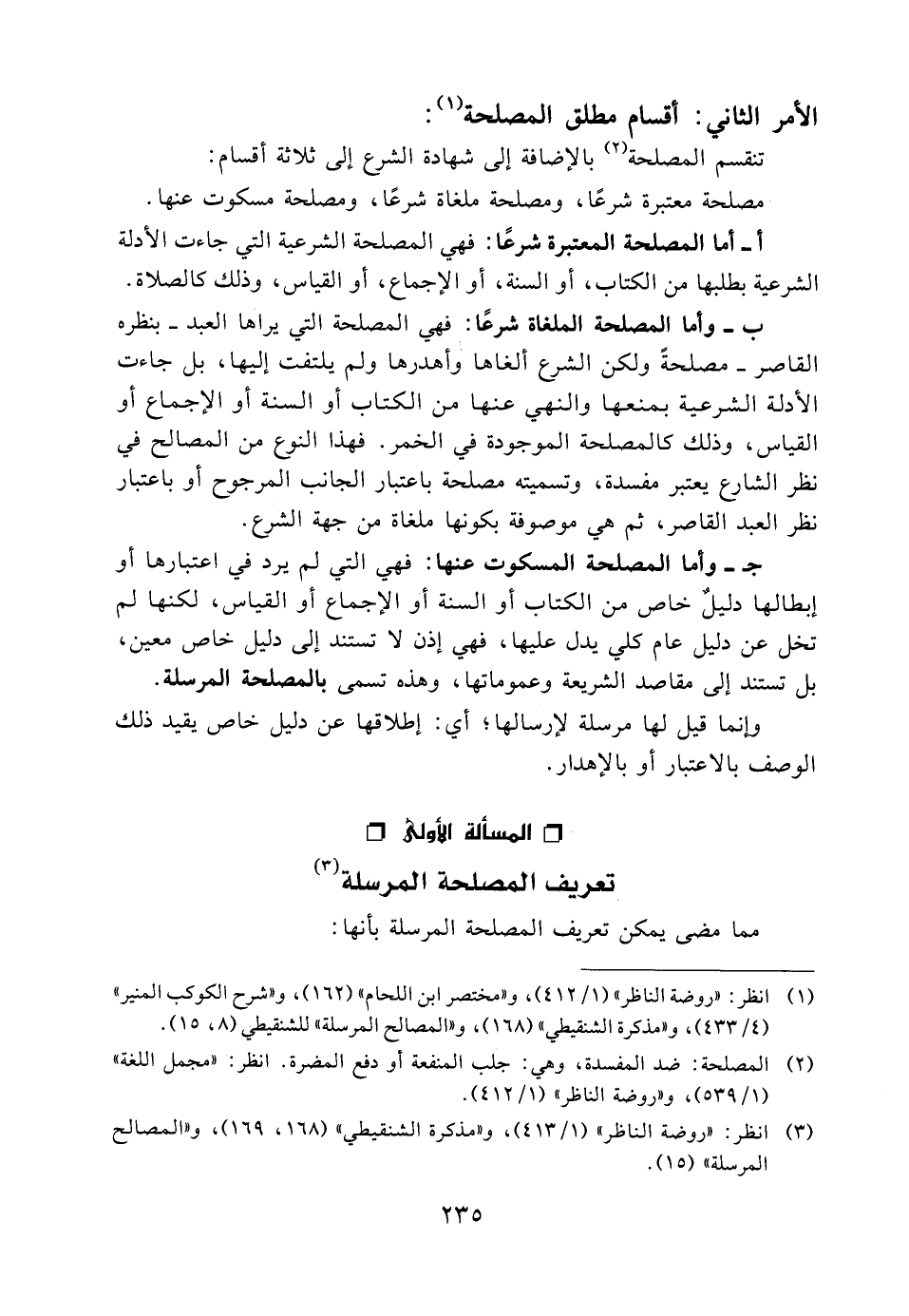 تنقسم المصلحة (2) بالإضافة إلى شهادة الشرع إلى ثلاثة أقسام: