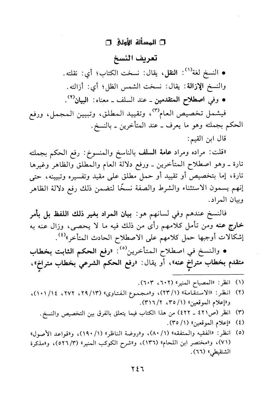 المسألة الأولى: تعريف النسخ