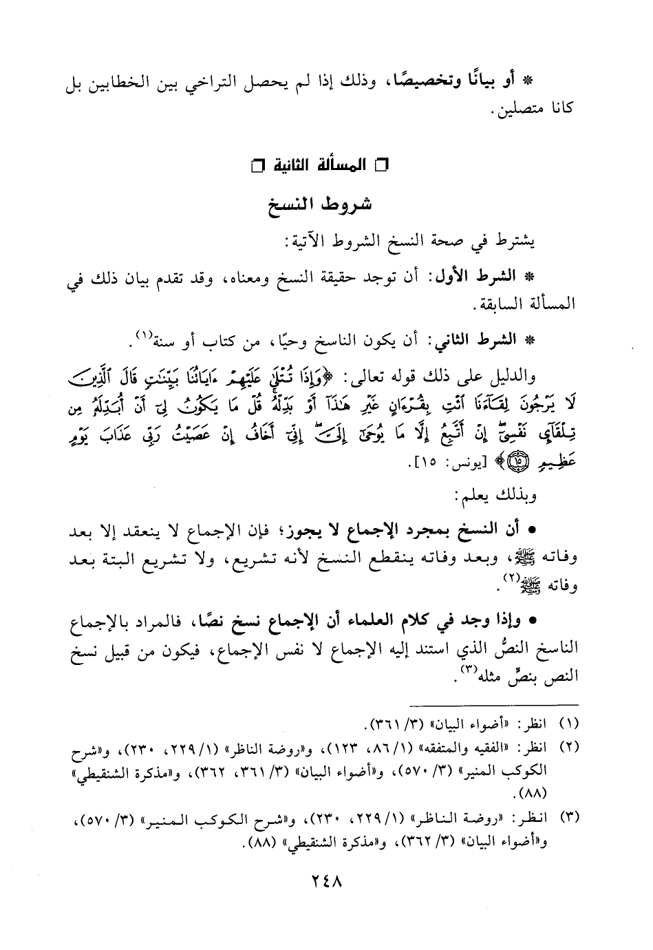 (3) انظر: "روضة الناظر" (1/229، 230) ، و"شرح الكوكب المنير" (3/570) ، و"أضواء البيان" (3/362) ، و"مذكرة الشنقيطي" (88) .