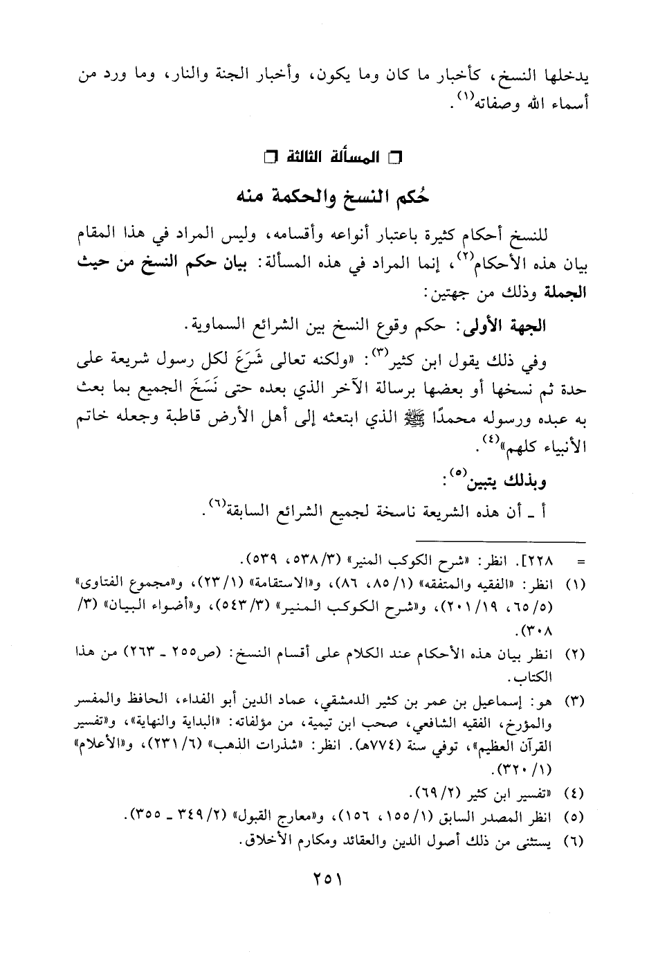(2) انظر بيان هذه الأحكام عند الكلام على أقسام النسخ (ص 255- 263) من هذا الكتاب.