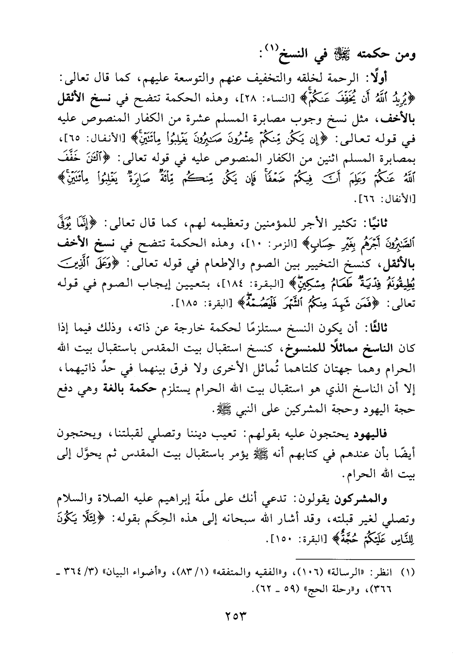 ومن حكمته سبحانه وتعالى في النسخ (1) :
