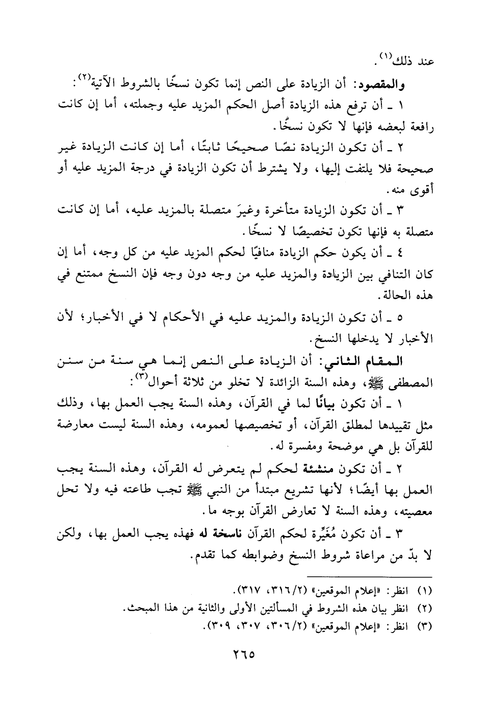المقام الثاني: أن الزيادة على النص إنما هي سنة من سنن المصطفى - صلى الله عليه وسلم -، وهذه السنة الزائدة لا تخلو من ثلاثة أحوال (3) :