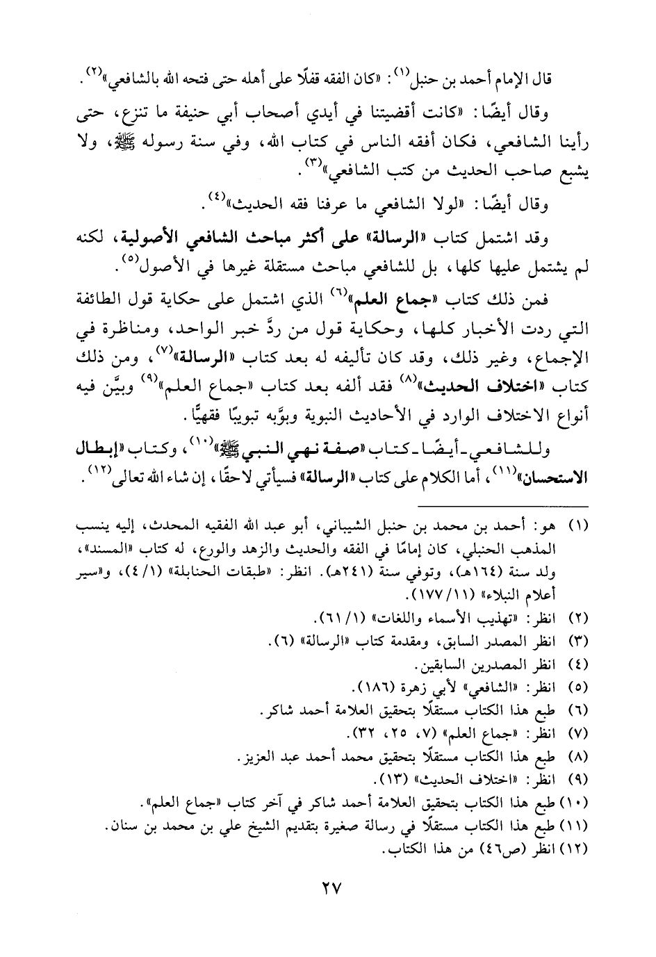 (3) انظر المصدر السابق، ومقدمة كتاب "الرسالة" (6) .