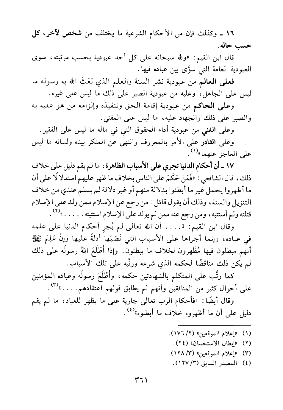 16- وكذلك فإن من الأحكام الشرعية ما يختلف من شخص لآخر، كل حسب حاله.