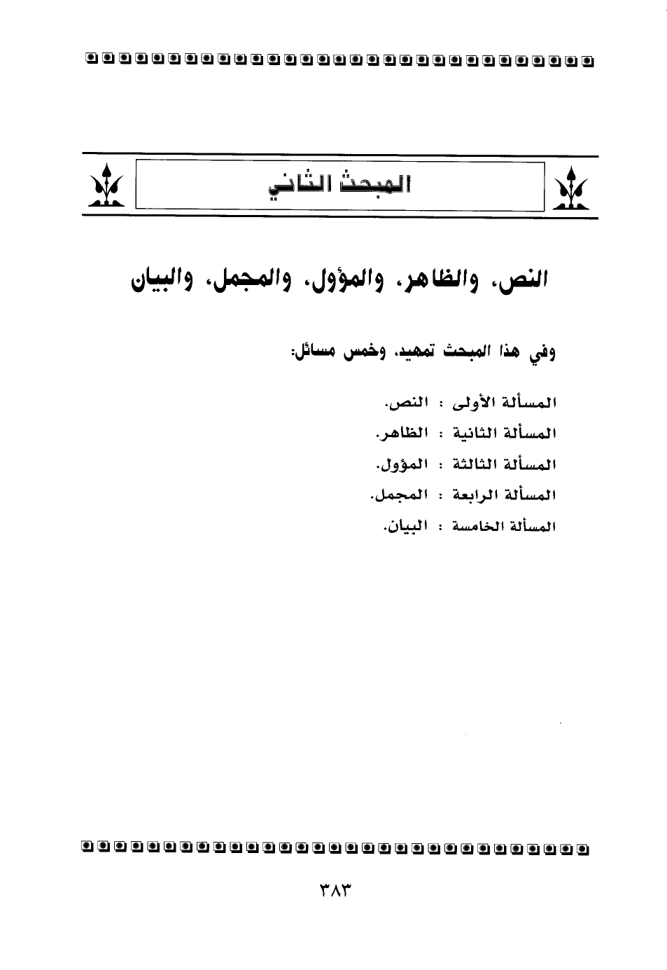المبحث الثاني: النص، والظاهر، والمؤول، والمجمل، والبيان