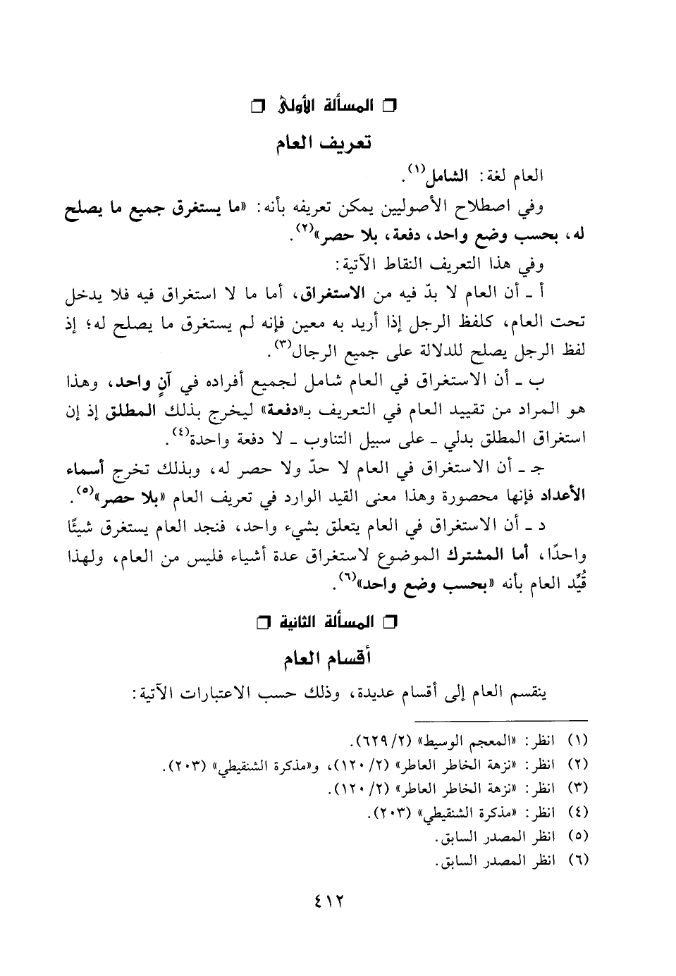 المسألة الأولى: تعريف العام