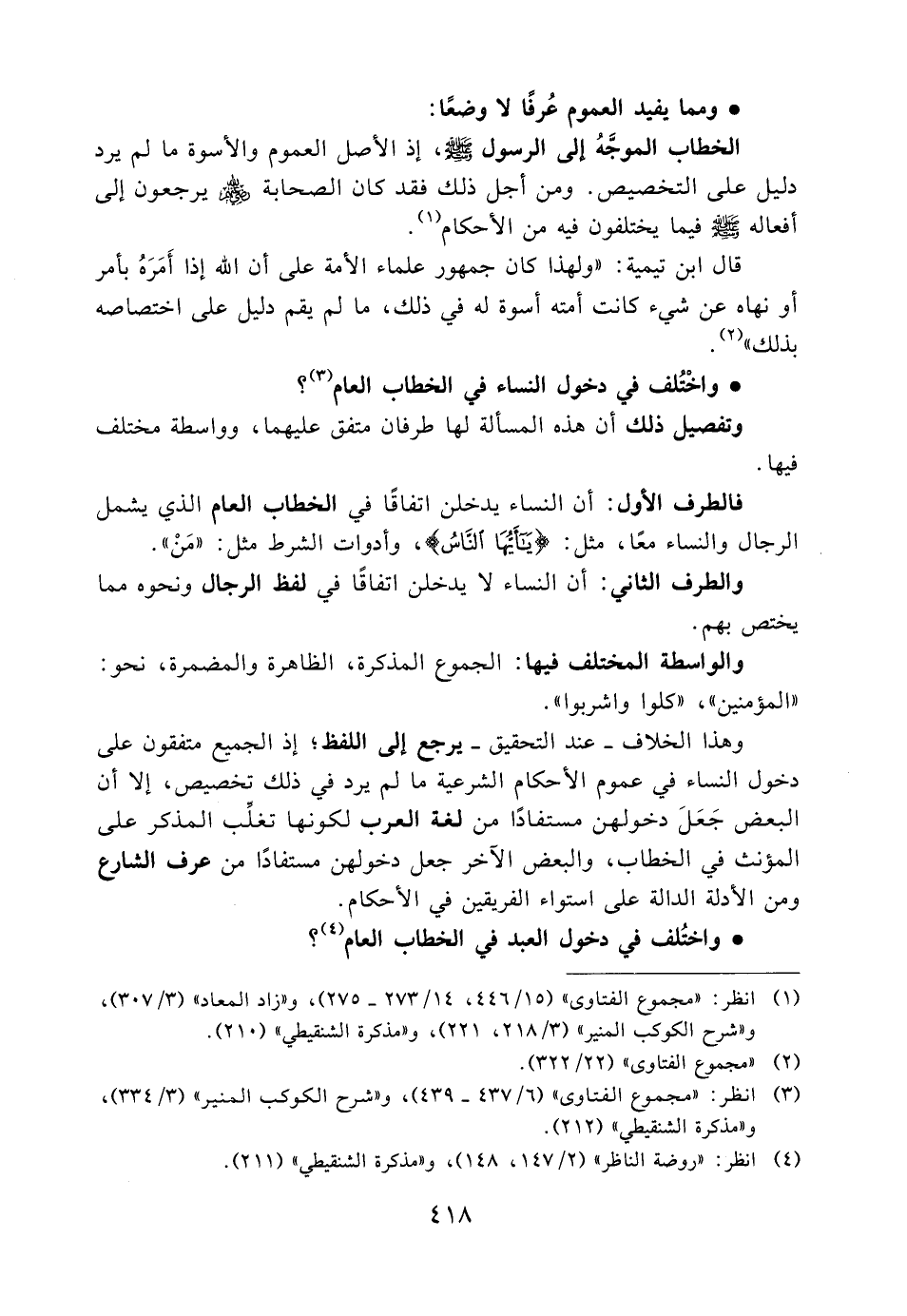 (4) انظر: "روضة الناظر" (2/147، 148) ، و"مذكرة الشنقيطي" (211) .