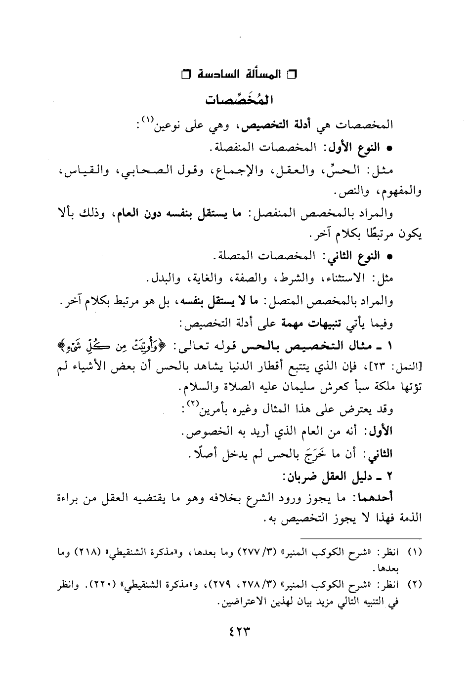 (2) انظر: "شرح الكوكب المنير" (3/278، 279) ، و"مذكرة الشنقيطي" (220) . وانظر في التنبيه التالي مزيد بيان لهذين الاعتراضين.