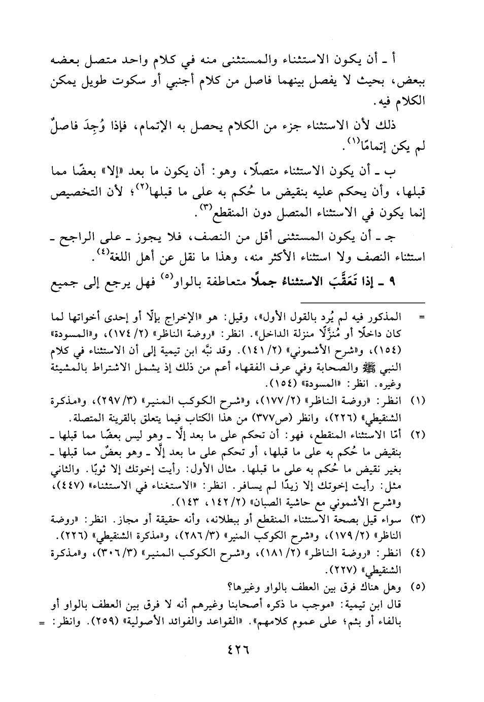 (3) سواء قيل بصحة الاستثناء المنقطع أو ببطلانه، وأنه حقيقة أو مجاز. انظر: "روضة الناظر" (2/179) ، و"شرح الكوكب المنير" (3/286) ، و"مذكرة الشنقيطي" (226) .