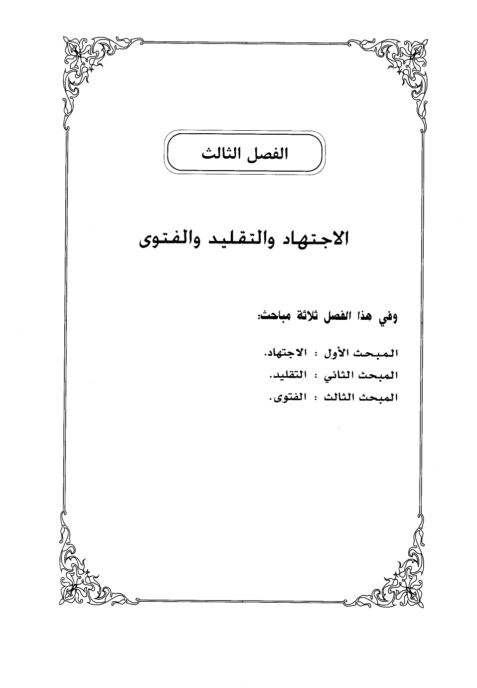 الفصل الثالث: الاجتهاد والتقليد والفتوى