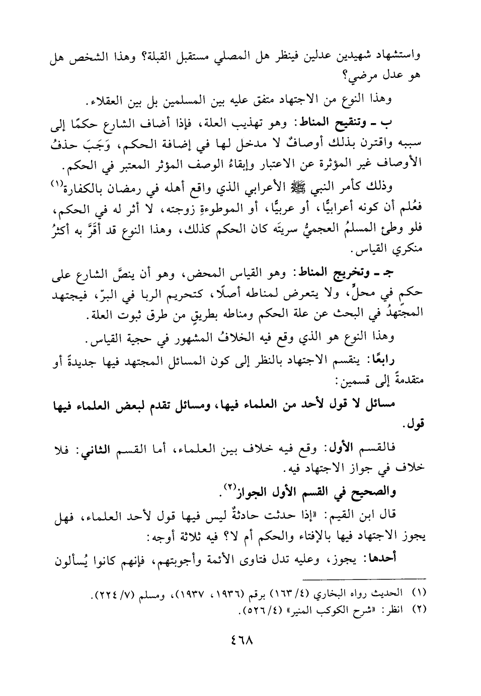 فالقسم الأول: وقع فيه خلاف بين العلماء، أما القسم الثاني: فلا خلاف في جواز الاجتهاد فيه.