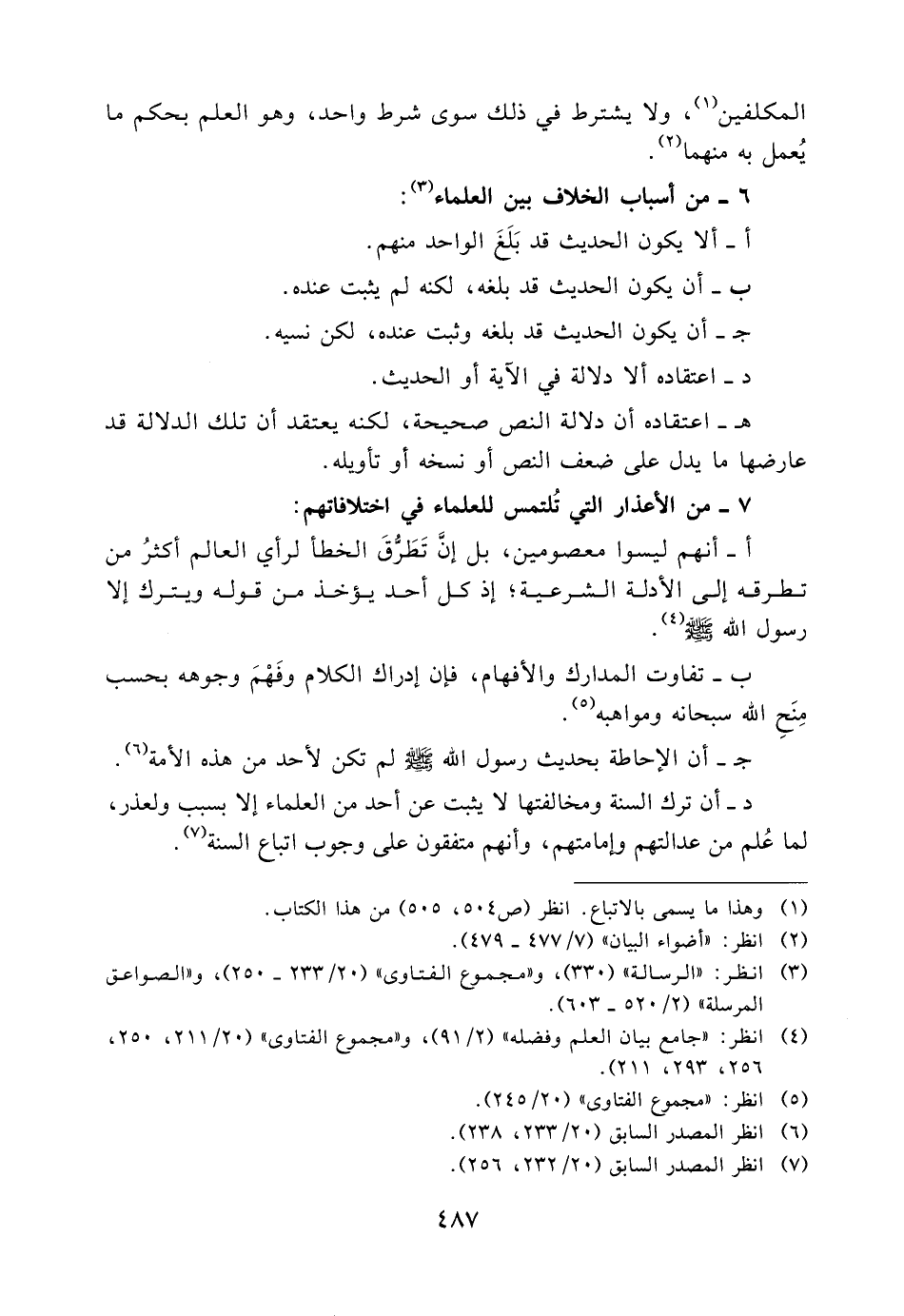 (5) انظر: "جامع بيان العلم وفضله" (2/91) ، و"مجموع الفتاوى" (20/211، 250، 256، 293، 211) .