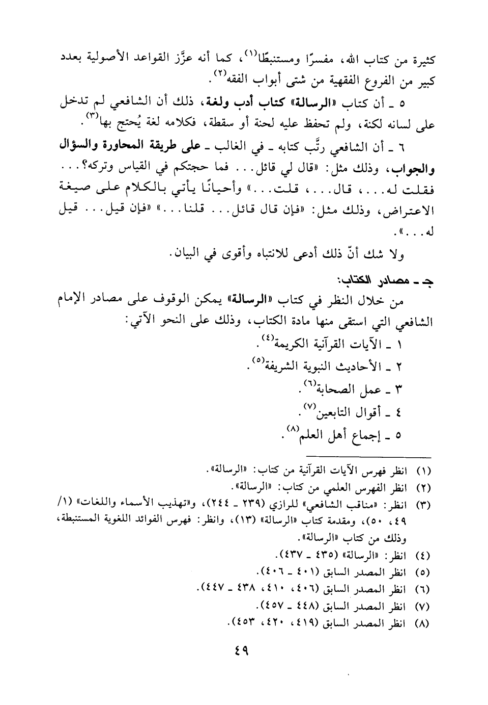 (3) انظر: "مناقب الشافعي" للرازي (239 – 244) ، و"تهذيب الأسماء واللغات" (1/49، 50) ، ومقدمة كتاب "الرسالة" (13) ، وانظر: فهرس الفوائد اللغوية المستنبطة، وذلك من كتاب الرسالة".