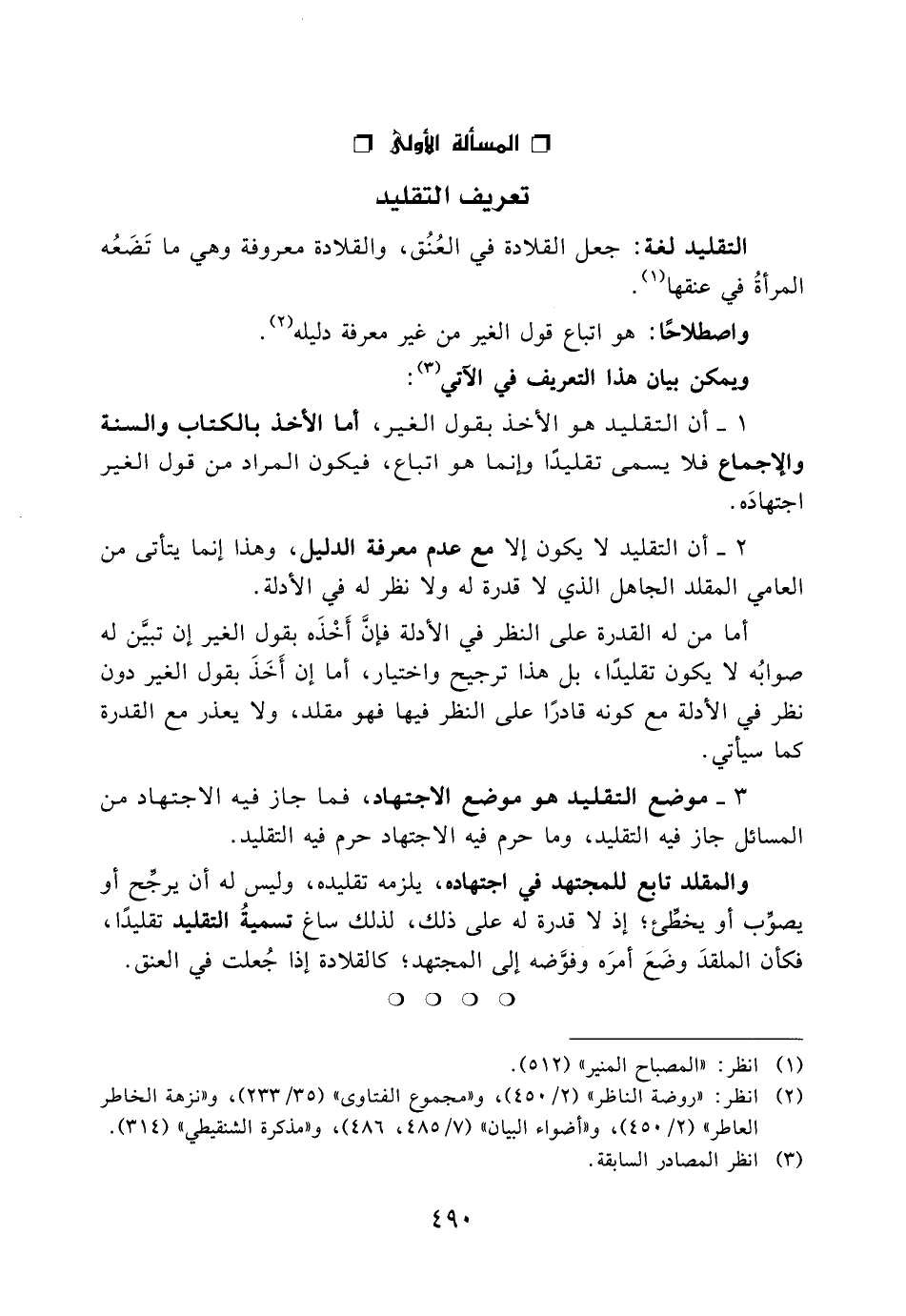 (2) انظر: "روضة الناظر" (2/450) ، و"مجموع الفتاوى" (35/233) ، و"نزهة الخاطر العاطر" (2/450) ، و"أضواء البيان" (7/485، 486) ، و"مذكرة الشنقيطي" (314) .