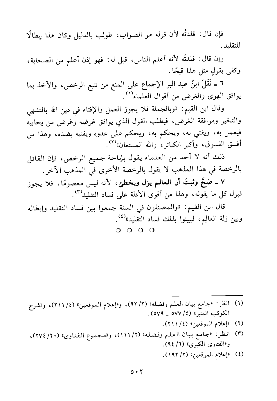 قال ابن القيم: «والمصنفون في السنة جمعوا بين فساد التقليد وإبطاله وبين زلة العالم، ليبينوا بذلك فساد التقليد» (4) .