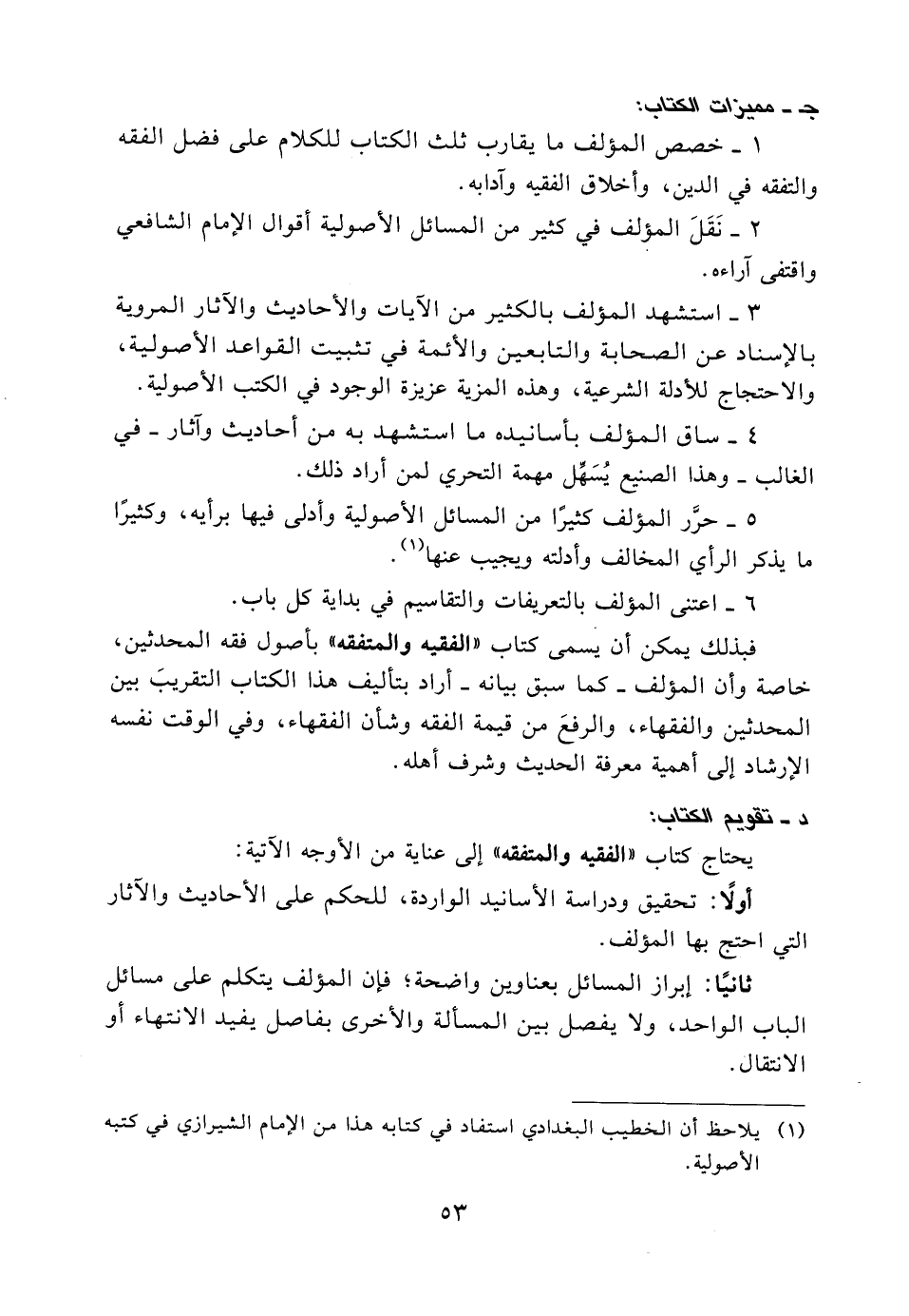 يحتاج كتاب "الفقيه والمتفقه" إلى عناية من الأوجه الآتية: