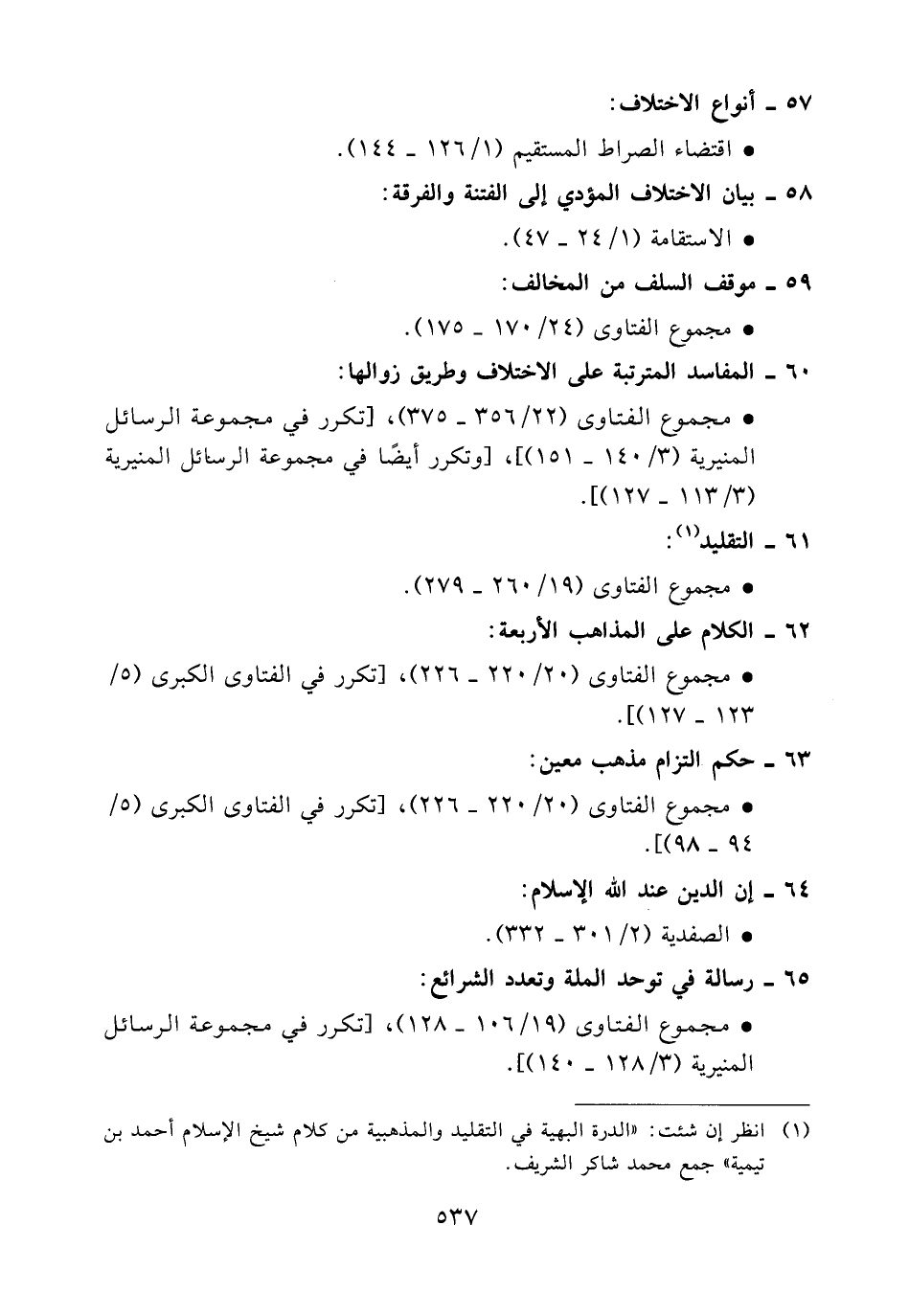 (1) انظر إن شئت: "الدرة البهية في التقليد والمذهبية من كلام شيخ الإسلام أحمد بن تيمية" جمع محمد شاكر الشريف.