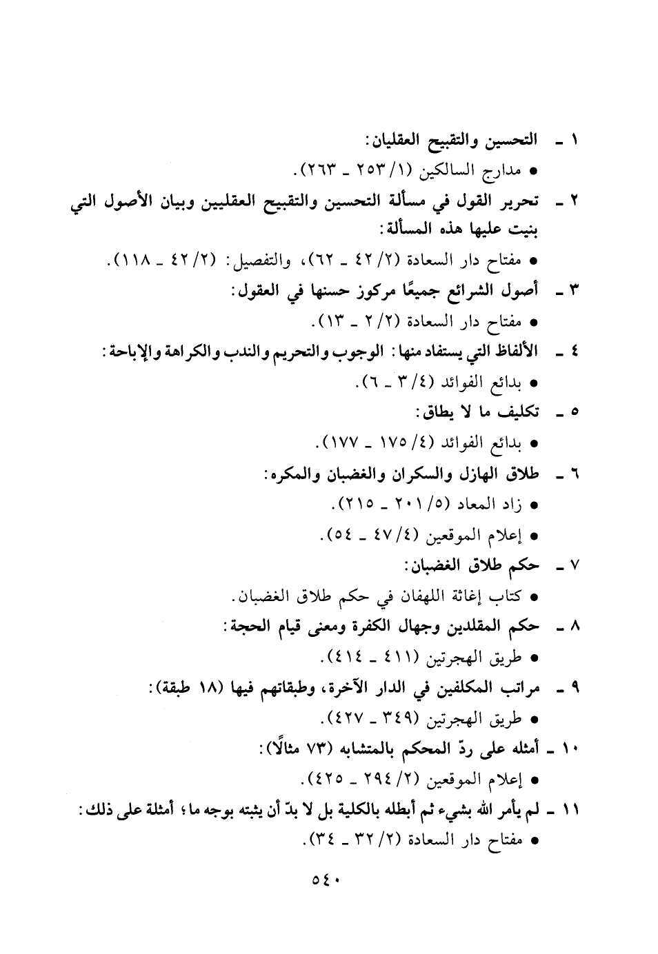 (مفتاح دار السعادة (2/42 – 62) ، والتفصيل: (2/42 – 118) .